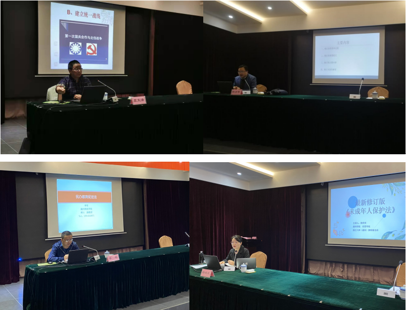 李军《民办教育促进法》、虞文清《中国共产党的伟大历史进程》、穆方平《教育法修正案》、杨欢欢《未成年人保护法》等课程结合实际授课,切实帮助学员解决在学校管理中遇到的法律问题。
